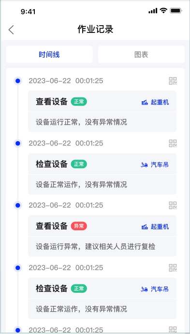 管理人員可以基于時間線的形式查看設(shè)備的作業(yè)記錄。同時支持以圖表的形式展現(xiàn)。
